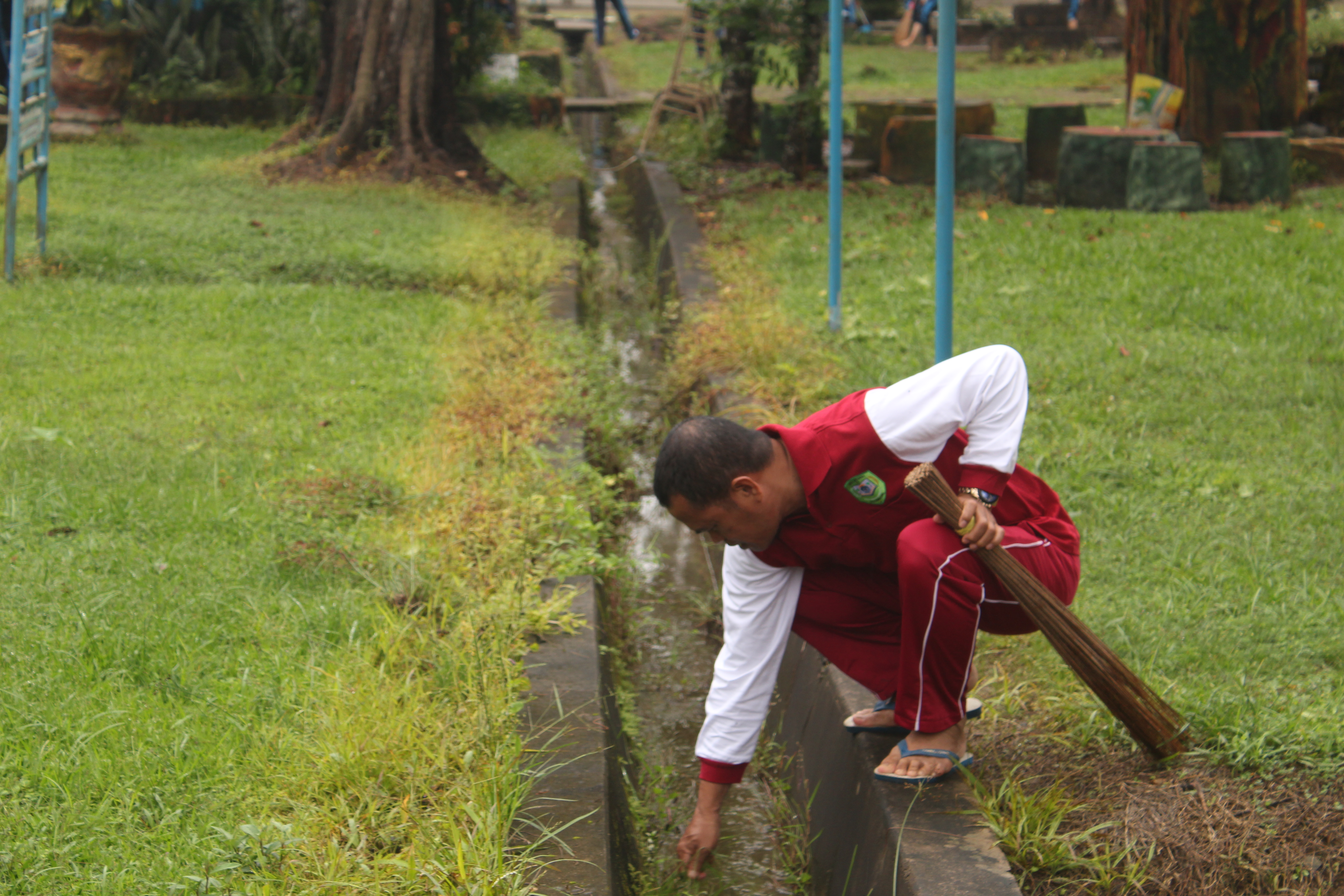 Kepala sekolah, H. Ridwan Nawawi, S.Ag., M.Si., memberikan arahan langsung agar seluruh jajaran sekolah turut serta menjalankan amanat tersebut. Dengan pembagian area kerja yang teratur, para guru dan murid mulai dari wilayah masing-masing lalu meluas ke seluruh lingkungan sekolah. Pemandangan yang muncul sungguh menginspirasi: guru dan murid bahu membahu menyapu halaman, memotong rumput, menggunting ranting, hingga mencangkul selokan untuk melancarkan aliran air. Tidak ada sekat antara mereka—semua larut dalam semangat gotong royong.