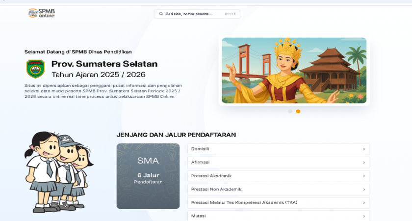 Website Resmi pendaftaran Sistem Penerimaan Murid Baru dapat diakses 24 Jam https://sumsel.spmb.id.
